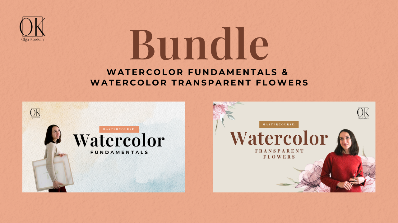 You can take all two master courses, 'Watercolor Fundamentals' and 'Watercolor Transparent Flowers', at once.
