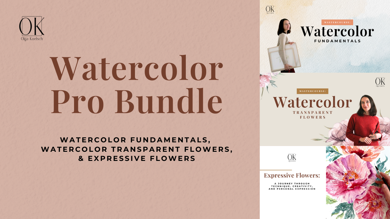 Watercolor Pro Bundle: Fundamentals, Transparent Flowers and Expressive Flowers - 6 Payments