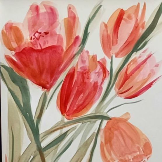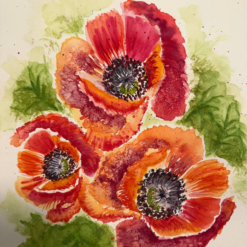 ✔️ Basics: Water control, brushstrokes, layering, roses, poppies, greenery.